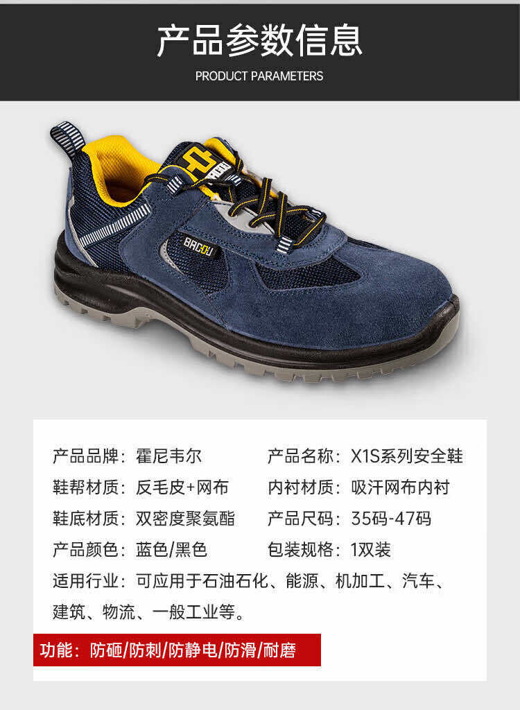 霍尼韦尔 SHX1S23503 巴固X1S系列蓝色EH电绝缘安全鞋