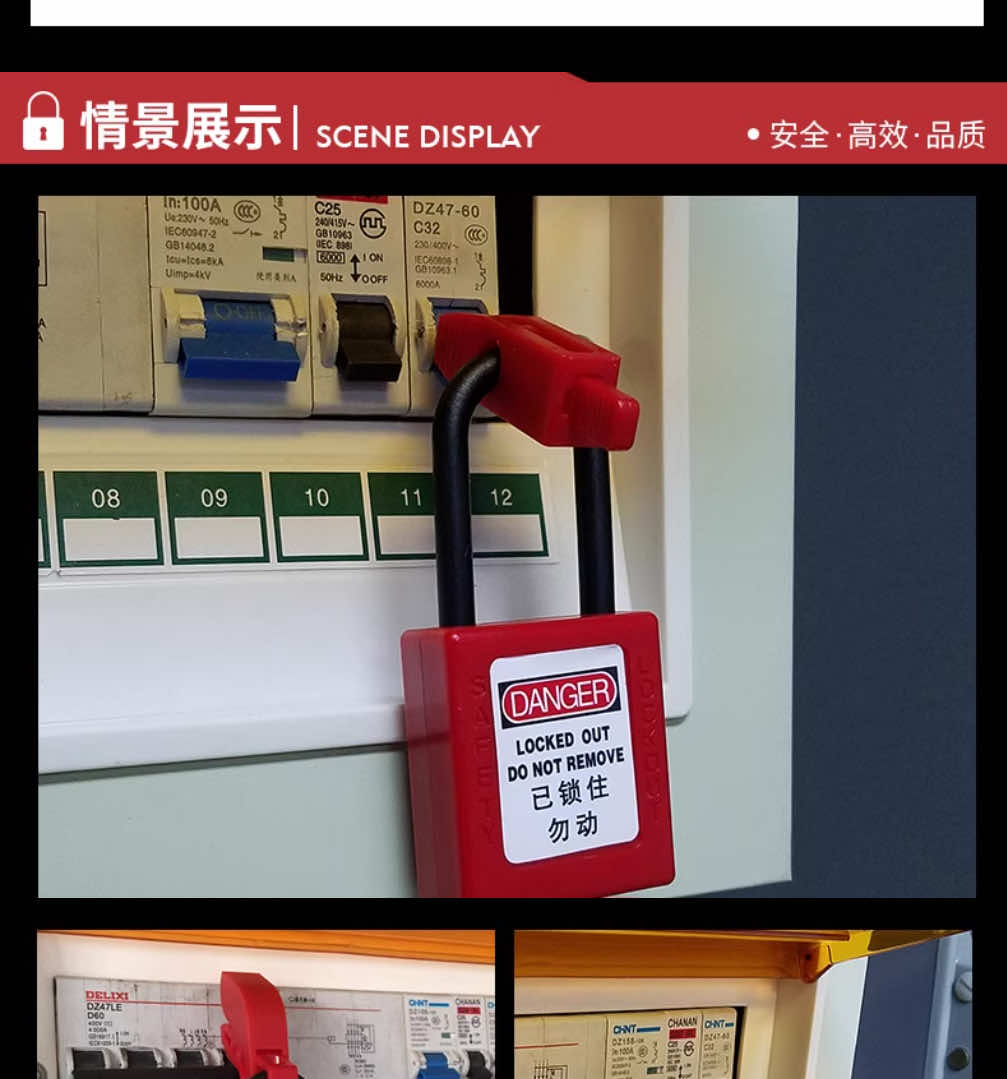 汉盾 HD-SL8312 六联搭扣式锁具 钳口1.5寸 钢钳口 聚丙烯PP注塑手柄 红色(1个/盒 300个/箱)