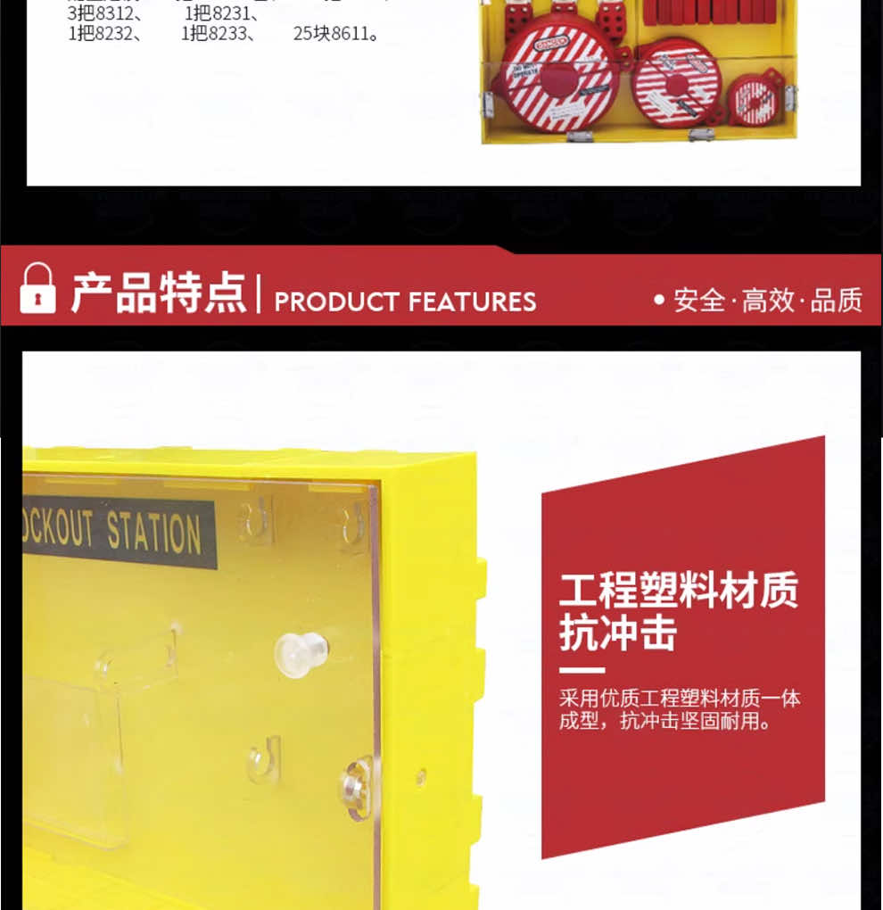 汉盾 HD-SL8714 四锁管理站 黄色 工程塑料(ABS)材质 聚碳酸酯(PC)门 外形尺寸:307mm X 228mm X 65mm(3个/箱)