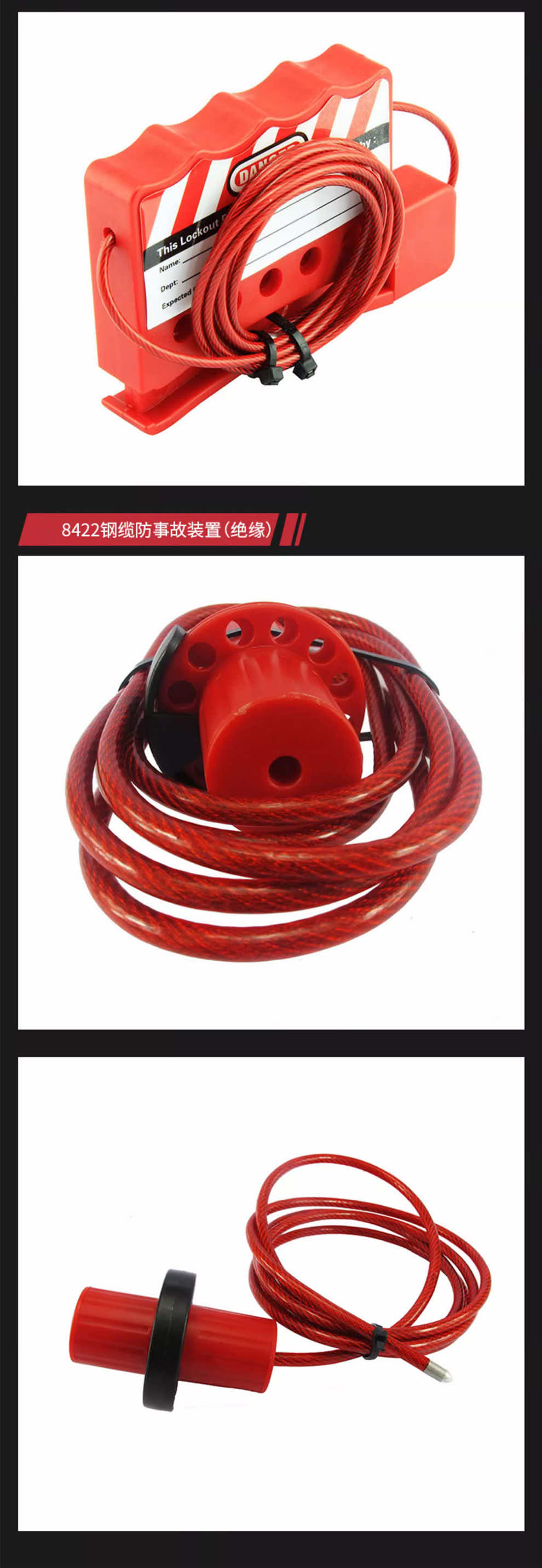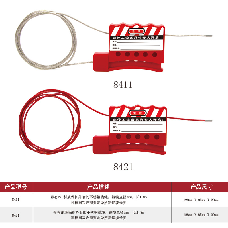 汉盾 HD-SL8237 万用阀门锁具 带可调节档臂 钢缆长度1.5m 红色(1个/盒 24个/箱)