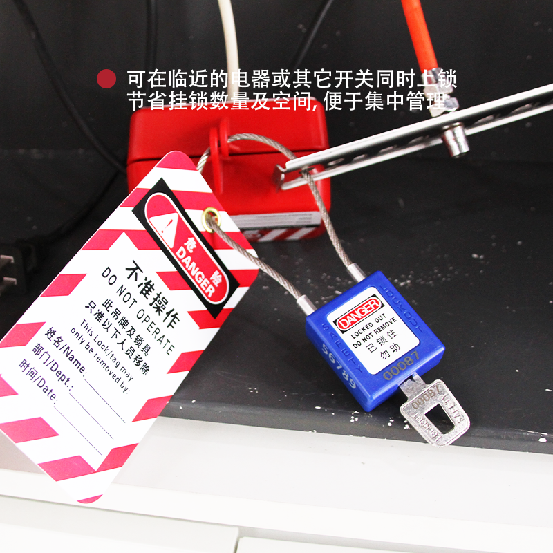 汉盾 HD-SL8237 万用阀门锁具 带可调节档臂 钢缆长度1.5m 红色(1个/盒 24个/箱)