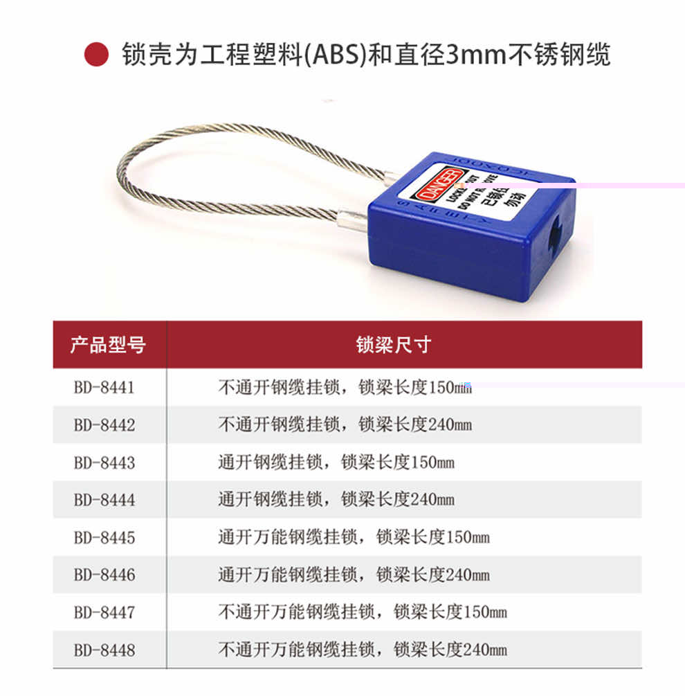 汉盾 HD-SL8238 万用阀门锁具 钢缆长度2m 红色(1个/盒 36个/箱)