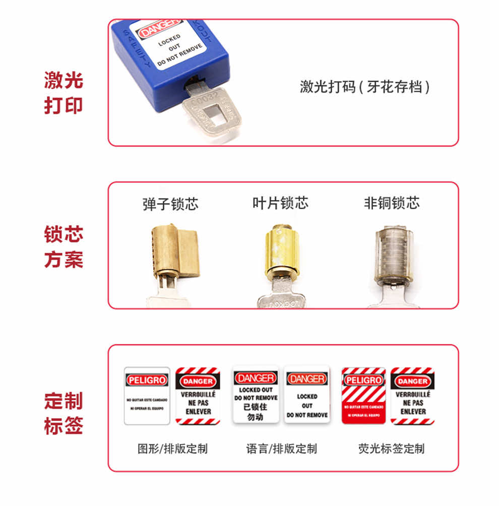 汉盾 HD-SL8311 六联搭扣式锁具 钳口1寸 钢钳口 聚丙烯PP注塑手柄 红色(1个/盒 360个/箱)