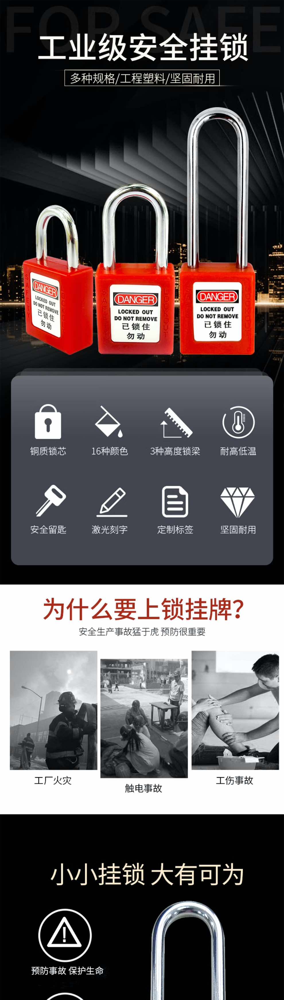 汉盾 HD-SL8311 六联搭扣式锁具 钳口1寸 钢钳口 聚丙烯PP注塑手柄 红色(1个/盒 360个/箱)