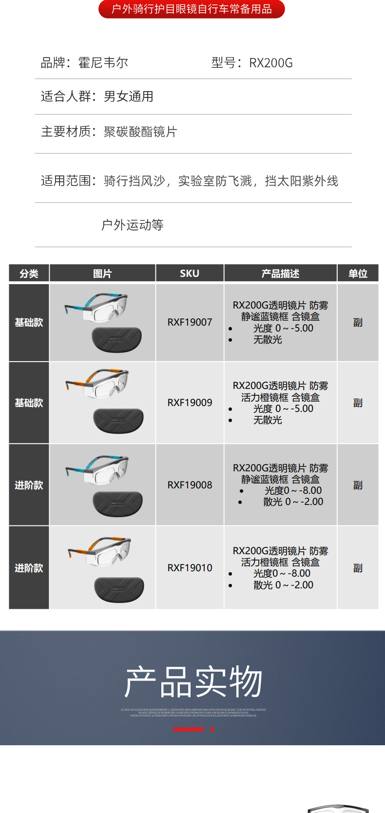 霍尼韦尔 1005986 M100 流线型运动款防护眼镜护目镜