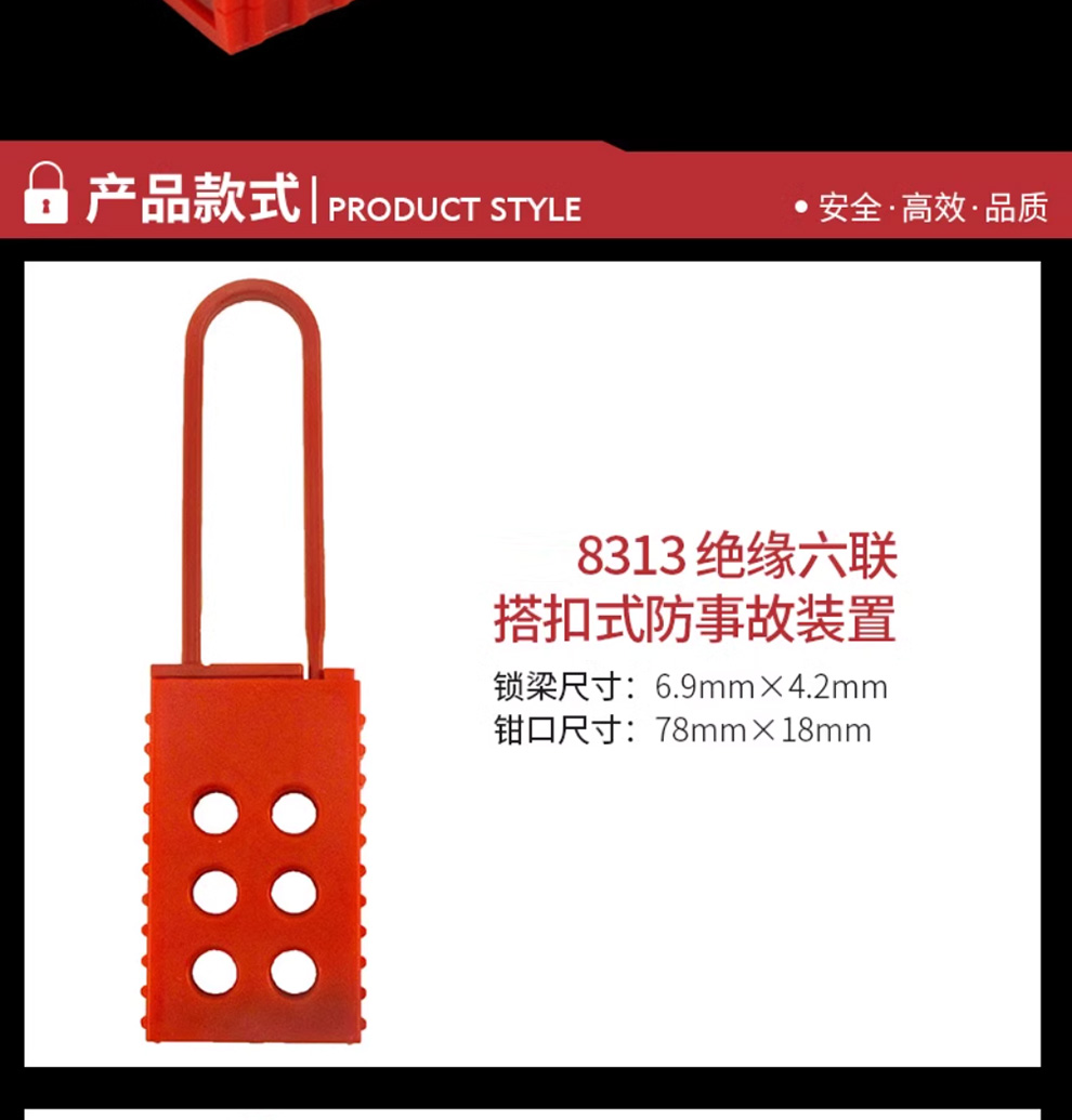 汉盾 HD-SL8313A 绝缘六联搭扣式锁具 细梁 ABS锁体 尼龙锁钩 红色(1个/盒 204个/箱)