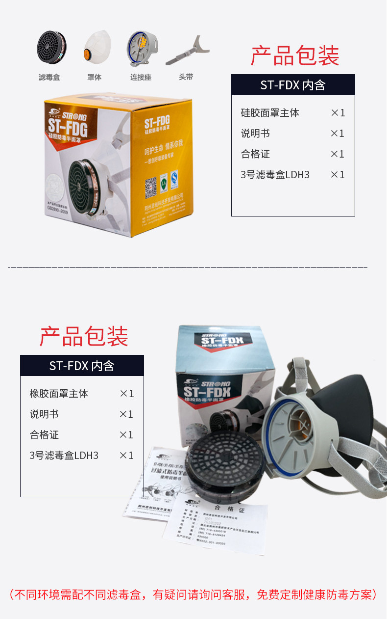 思创ST-M60G-2B 高端大视窗纯硅胶防毒面具配滤毒罐