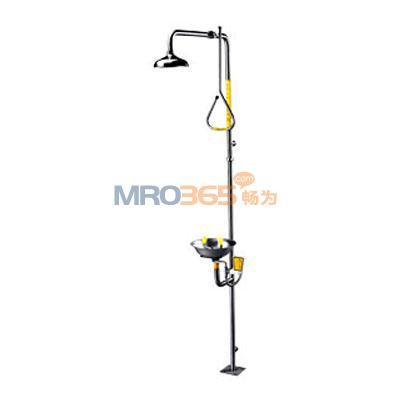 复合式淋浴洗眼器,洗眼器为SE-582洗眼/面器,配备不锈钢水盆和带防尘盖的双喷淋嘴。淋浴为大水流淋浴头配备不锈钢支柱,不锈钢拉杆。