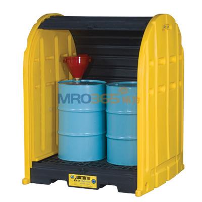 符合安全规范的环保型存储桶EcoPolyBlend™DrumSheds™功能,耐气候性,坚固耐用的设计制造环保50%的再生聚乙烯。方便的卷门顶允许从前面或后面进入。52广开门“接受托盘载荷。的防漏液槽托盘符合EPA和SPCC要求,具有可移动,持久耐用甲板光栅,便于清理泄漏。宽敞的内部空间提供了充足的扩展空间添加漏斗或泵。安全功能包括接地能力,整体锚固螺栓位置的风阻力,成型耳其接受挂锁安全。Forliftk口袋正面和背面可以很容易地重新定位空棚。船舶完全组装。可选的托盘斜坡,便于装载。
